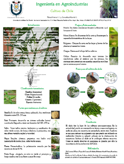 Cultivo de chile Describe la anatomía del cultivo, su clasificación, factores bióticos y abióticos que afectan su cultivo, así como las operaciones agrícolas implementadas durante su cultivo. Pérez-Viveros Janid y González-Montiel L.